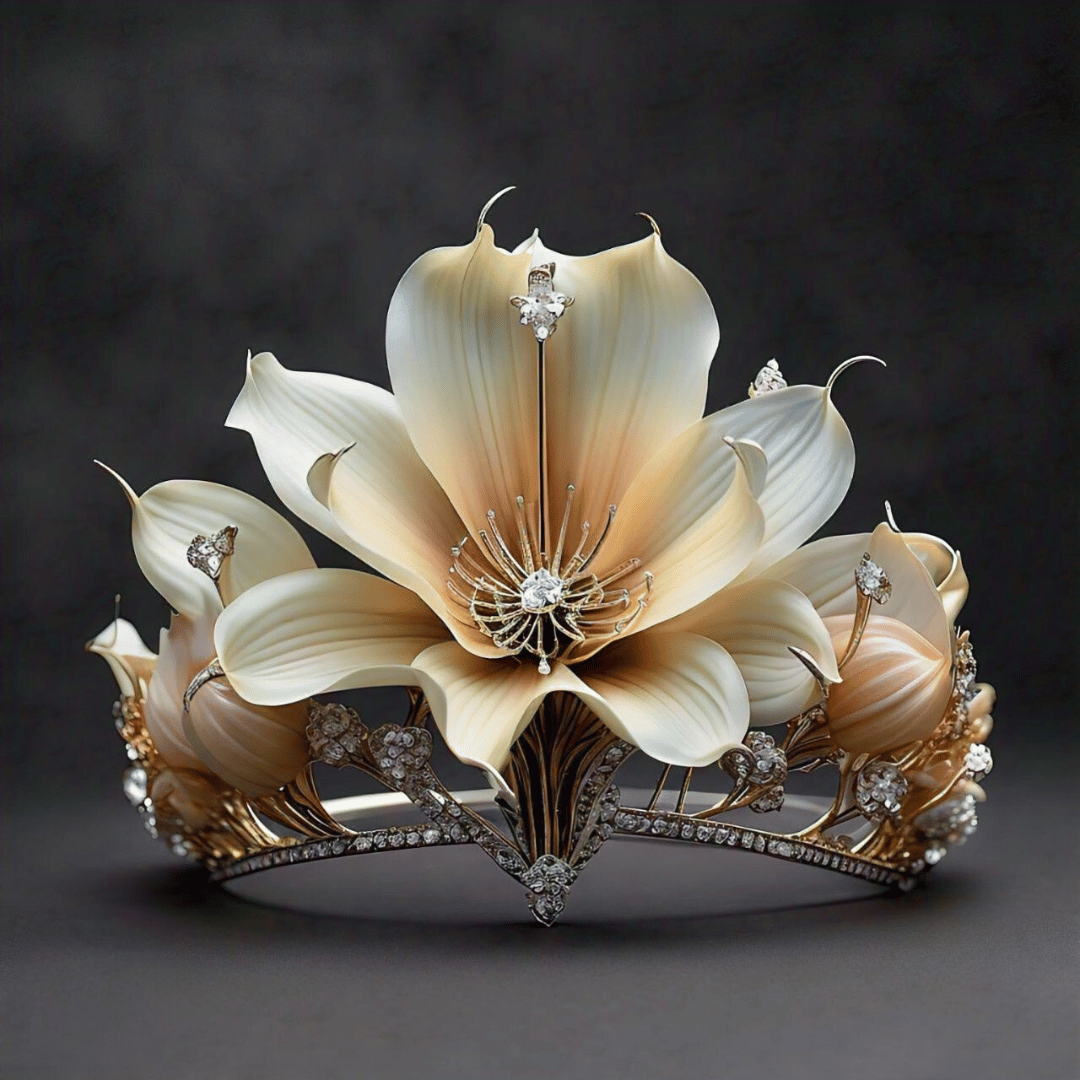 This exquisite tiara inspired by **Angola** features blooming floral motifs symbolizing the nation’s rich natural beauty and vitality, with diamond accents reflecting the country’s renowned mineral wealth.