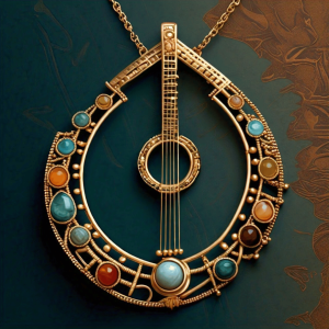 This pendant celebrates Angola’s musical heritage, shaped like a traditional Congo guitar (Dikanza) — a symbol of rhythm, culture, and storytelling. The gold frame adorned with vibrant gemstones mirrors the diversity of Angolan sounds, where every note echoes the harmony between land, people, and spirit.
